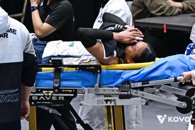 타나차는 지난 24일 현대건설전 5세트 2-2에서 블로킹 후 착지하다가 상대 팀 카리 가이스버거(등록명 카리)의 발을 밟고 넘어졌다. 김종민 도로공사 감독은 "타나차가 남은 경기에 출전하기 쉽지 않을 것 같다"며 걱정했다.