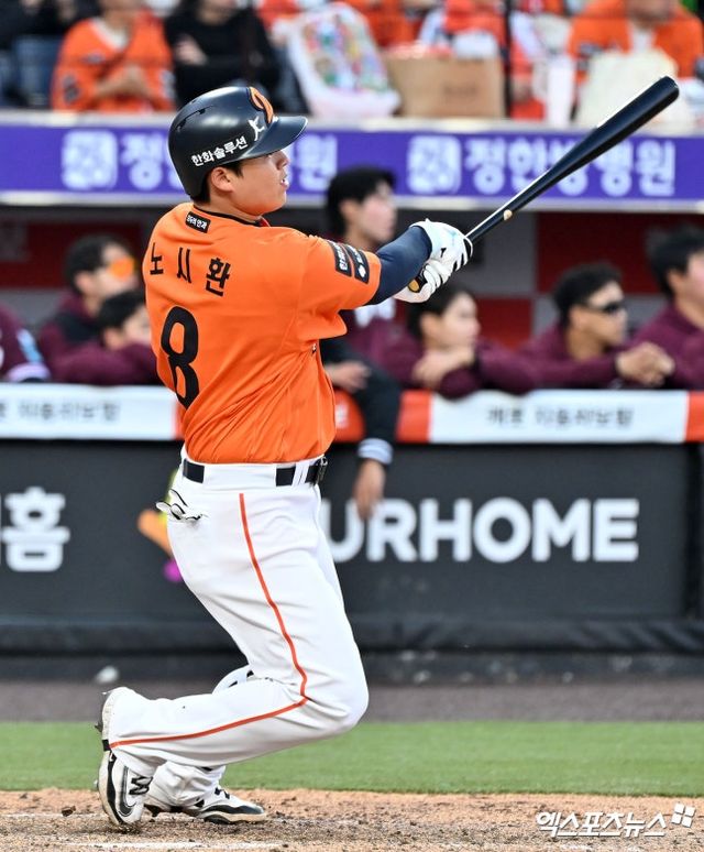 노시환은 지난 28일 대전 한화생명볼파크에서 열린 2026 신한 SOL뱅크 KBO리그 키움 히어로즈전에 4번 타자 3루수로 선발 출전해 6타수 1안타 1타점으로 팀의 10-9 승리에 이바지했다.