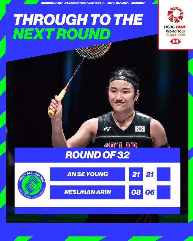 안세영이 지난 3일(한국시간) 영국 버밍엄에 있는 유틸리타 아레나 버밍엄에서 열린 대회 여자 단식 1회전(32강)에서 네슬리한 아린(튀르키예·세계 34위)를 2-0((21-8 2-16)으로 완파했다.